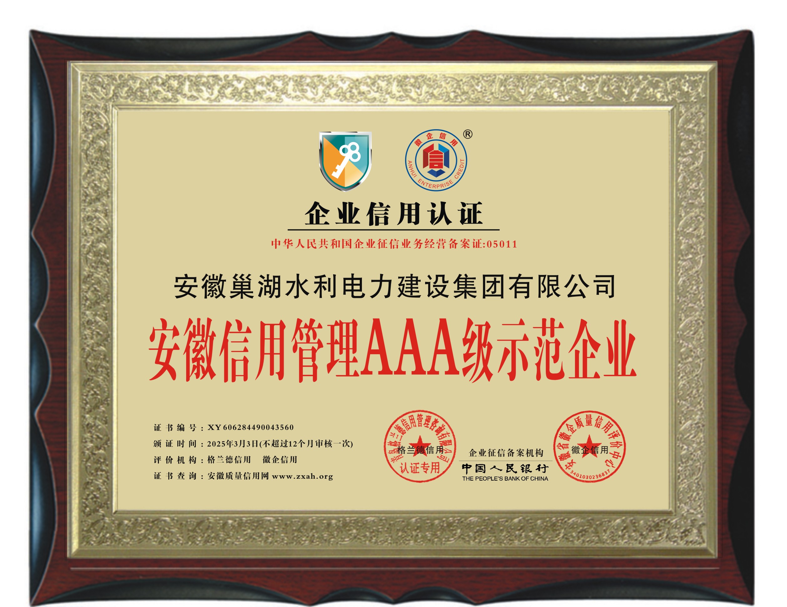 安徽信用管理AAA級示范企業