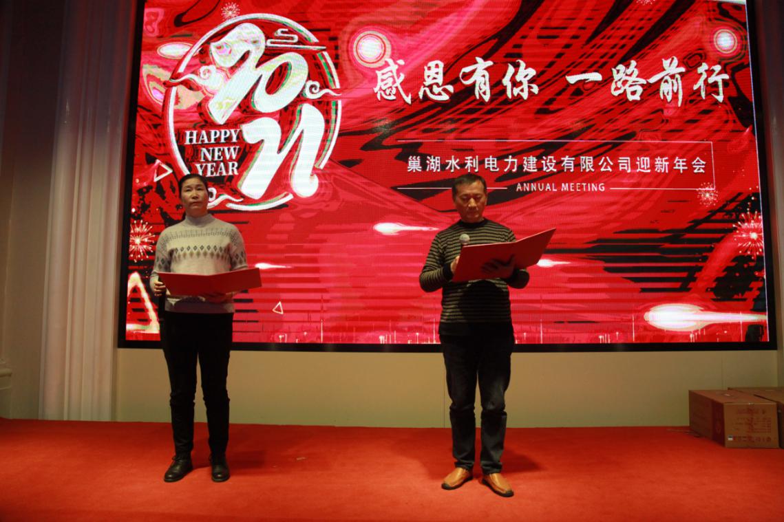 2020是成長的一年、蛻變的一年,我們收獲滿滿。2021年已到來,新的一年開啟新的希望,新的歷程承載新的夢想,巢湖水利電力建設(shè)有限公司12月30日晚在巢湖碧桂園鳳凰酒店舉行“感恩有你,一路前行”迎新年會!此次年會邀請公司股東、員工、建造師、八大員還有公司退休老職工歡聚一堂。